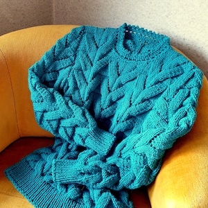 Hand Knitted Women Sweater-Knit Women’s Sweater-Pullover-Sea-Green Sweater-Wool Sweater-Soft and warm-Beautiful pattern-Оriginal finishing
