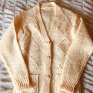 50s 60s Womens 38 Shetland Wool Hand Framed Open Front Cardigan Sweater, 1950s Shetland Wool Cardigan Sweater, 1960s Cardigan Sweater, 50s