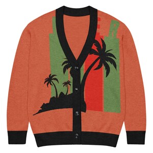 Early 1960’S Cardigan Sweater – BEST & CO. Fifth Avenue – Screen Printed – with Pink on Cream Knit – Size Small