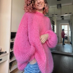 Airy Mohair Sweater, Hand Knit Pullover, Oversized Knit Sweater in Mohair, Loose Fit, Womens Knitted Blouse, Chunky sweater, Bridal sweater